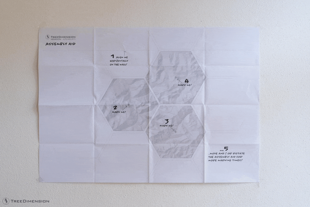 - 1x Montageschablone aus Papier (wird ab 2 bestellten Hexagons beigelegt)